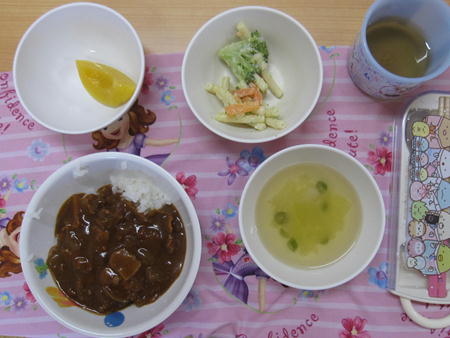 ・鬼っ子キーマカレー ・コロコロサラダ ・澄まし汁 ・みかん