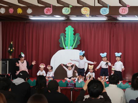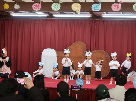 お遊戯会♬ 今年も無事、お遊戯会を開催することができました。 たくさんのご協力ありがとうございました。 お客様の前で子どもたちは少し緊張している様子でしたが、練習の成果を見ていただけたようで良かったです。